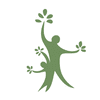 Stylized illustration of a tree with bouncing figures, one black and one brown, representing people, surrounded by green leaves on branches.
